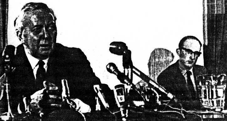 15 November 1971: Harold Wilson visits Northern Ireland. Briefing officer J. C. Wallace listens with interest.